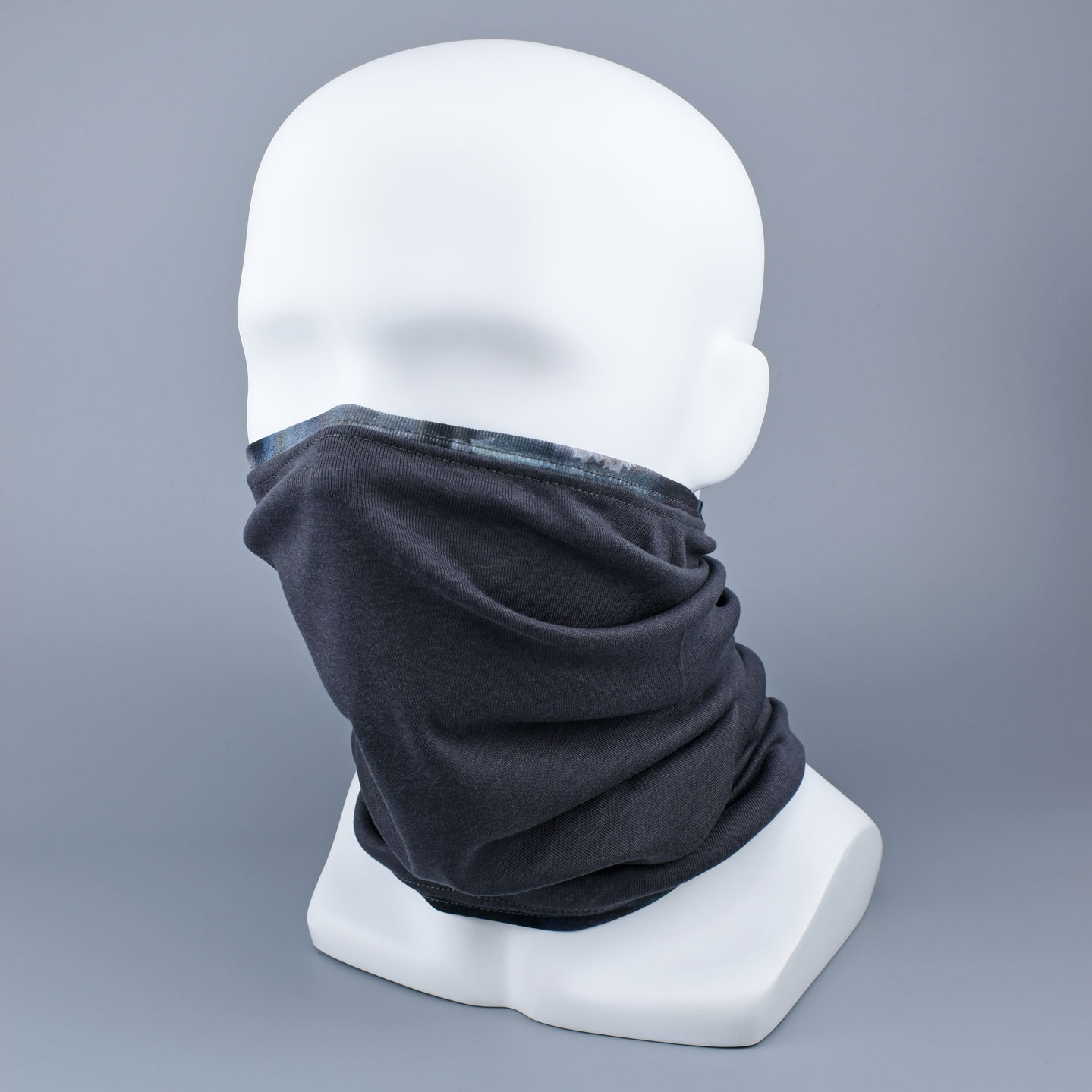 Upcyclingstoff-Bündchen machen dieses Multifunktionstuch GRAU zu deinem